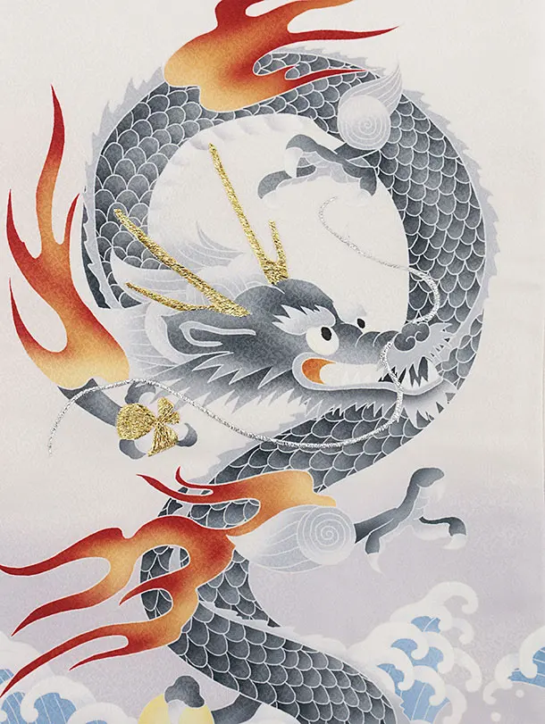 男児産着 お宮参りレンタル2568 白地裾黒 龍に波と丸紋