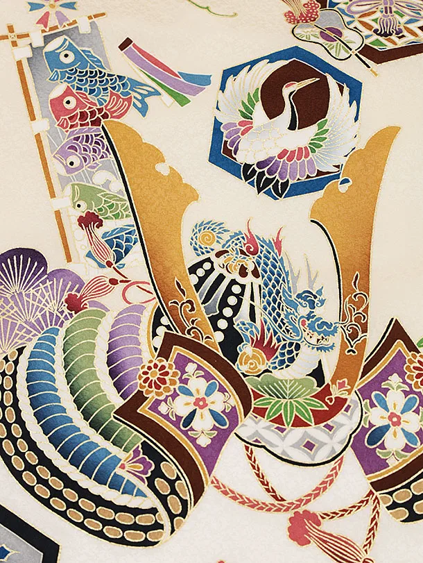 男児産着 お宮参りレンタル2602【正絹】白地 鷹と兜に富士