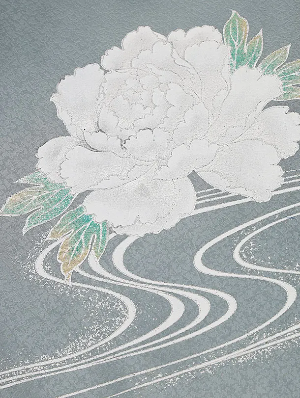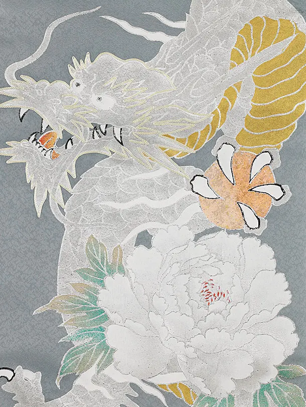 男児産着 お宮参りレンタル2606【正絹】伝産 京友禅 モスグレー地 龍と牡丹