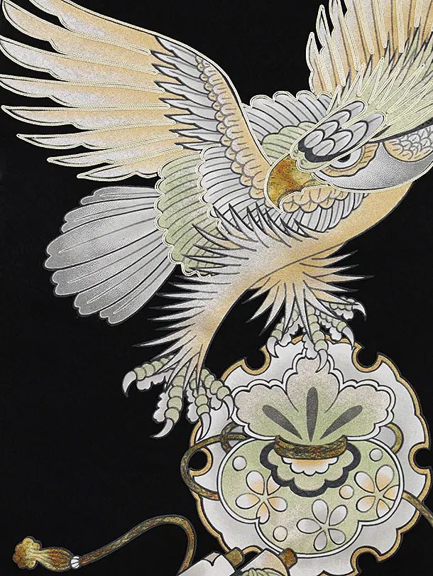 男児産着 お宮参りレンタル2607【正絹】伝産 京友禅 黒地 鷹に牡丹