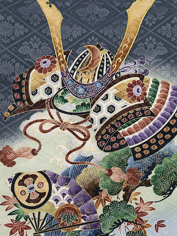 男児産着 お宮参りレンタル2613 ブルーグレー 兜に松
