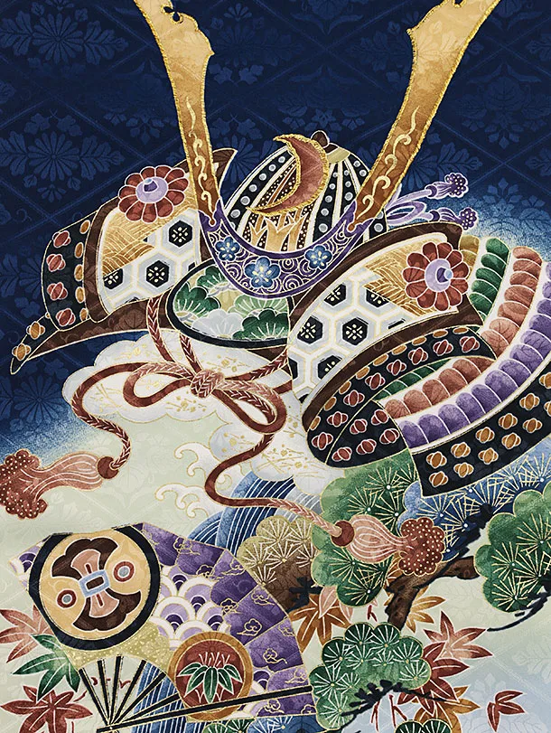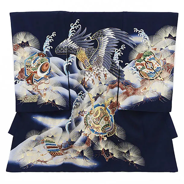 男児産着 お宮参りレンタル2614 青地 兜に松