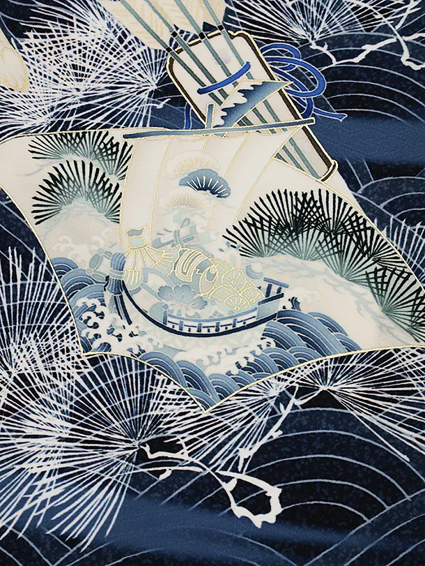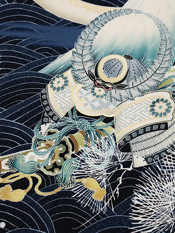 男児産着 お宮参りレンタル2617 華徒然 濃紺 鷹に戦国武将