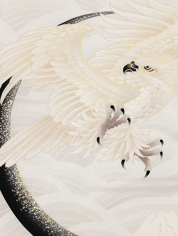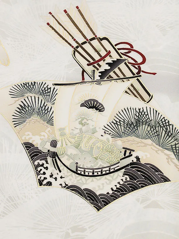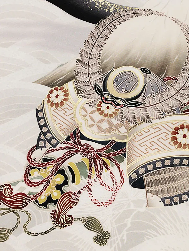 男児産着 お宮参りレンタル2618 華徒然 薄グレー 鷹に戦国武将