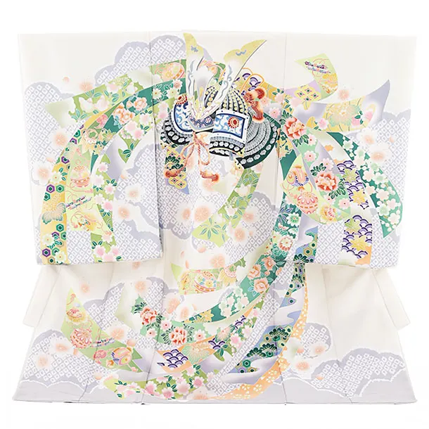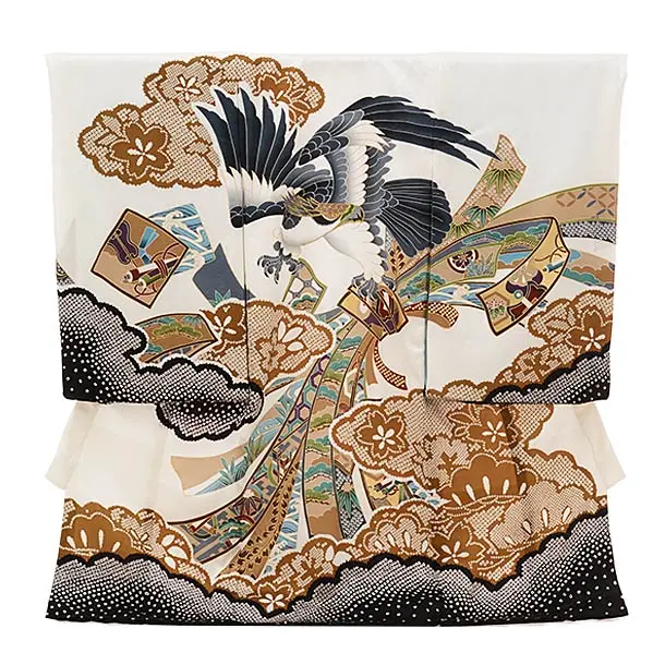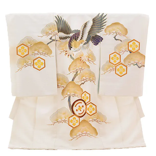 男児産着 お宮参りレンタル2632 アイボリー地 鶴