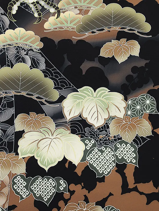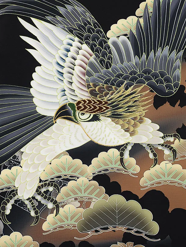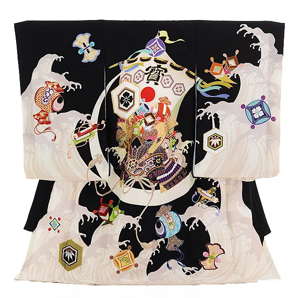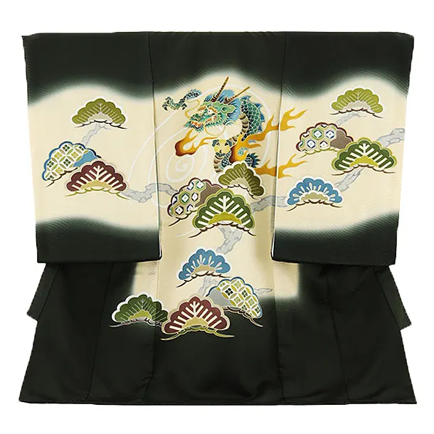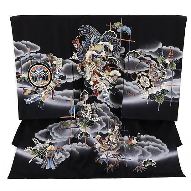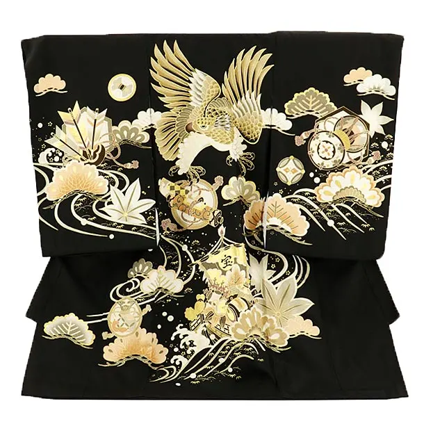 男児産着 お宮参りレンタル2687 黒地 鷹に蔦文