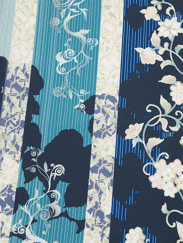 お祝い着をかける時は 絵柄がよく見える様に広げ抱いた子供の体を覆う様に掛け産着の付紐の一方を肩側から他方を脇から通して 抱き手の方の背で蝶結びにします。