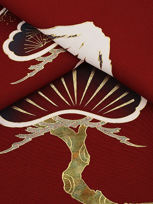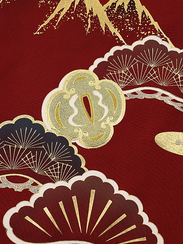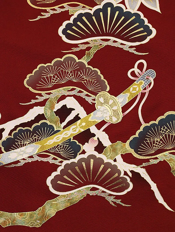 男児産着 お宮参りレンタル2709【正絹】 ワイン色 ウロコ柄 鷹に白蛇