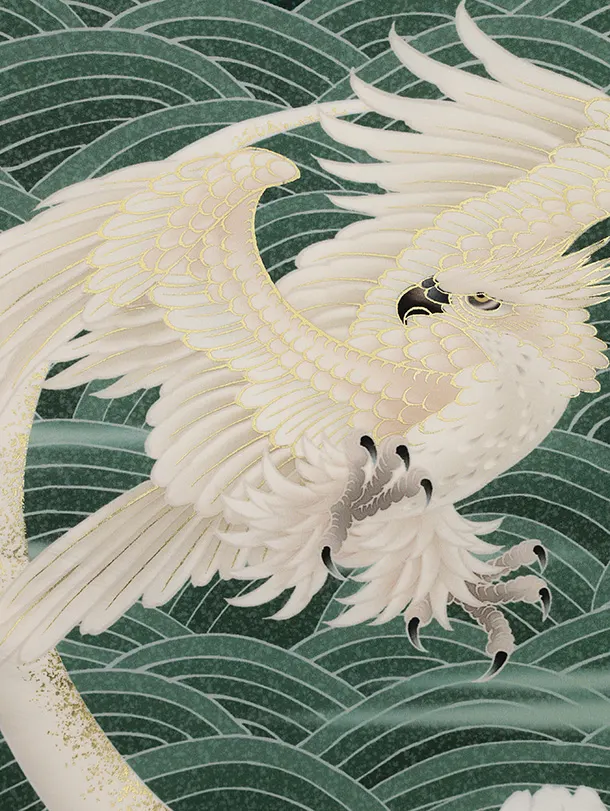 お祝い着をかける時は 絵柄がよく見える様に広げ抱いた子供の体を覆う様に掛け産着の付紐の一方を肩側から他方を脇から通して 抱き手の方の背で蝶結びにします。