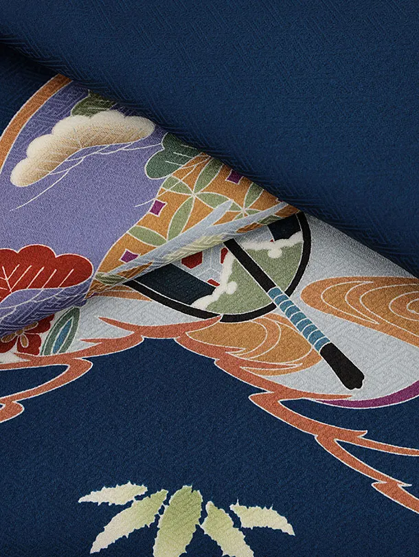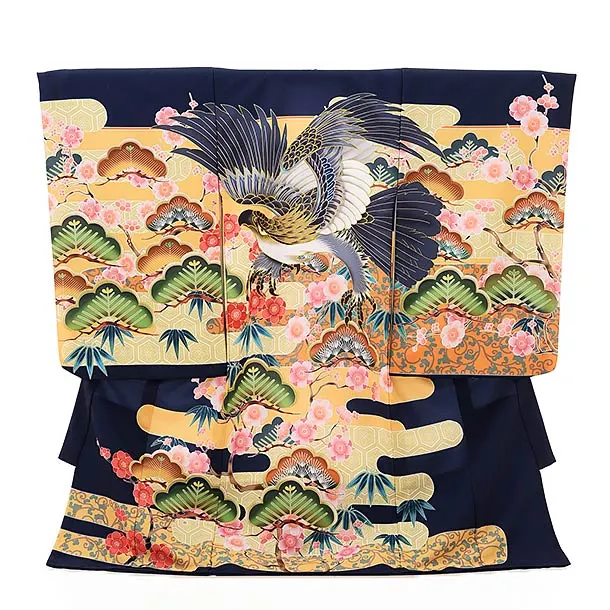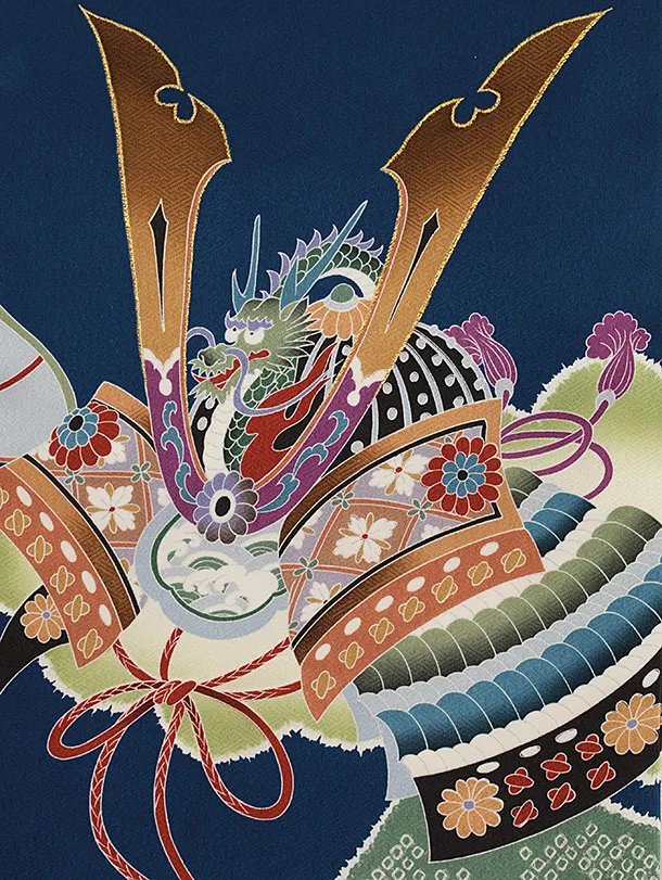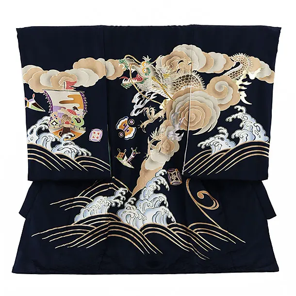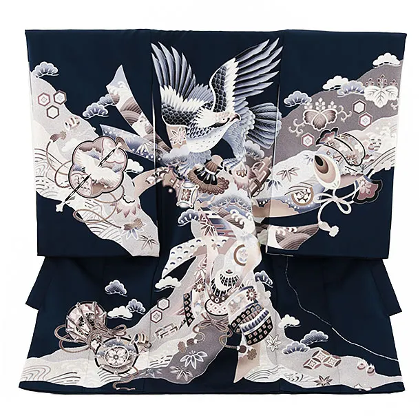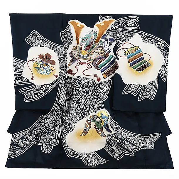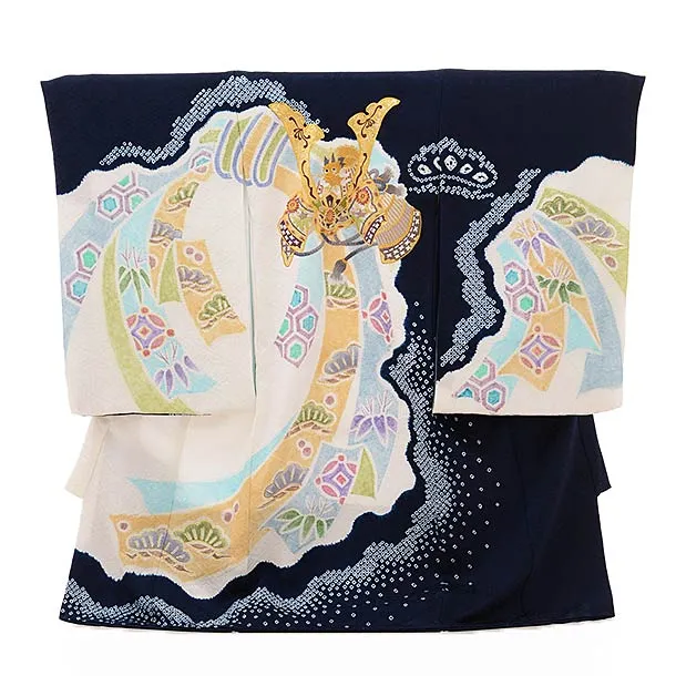 男児産着 お宮参りレンタル2742【正絹】紺地 兜に松