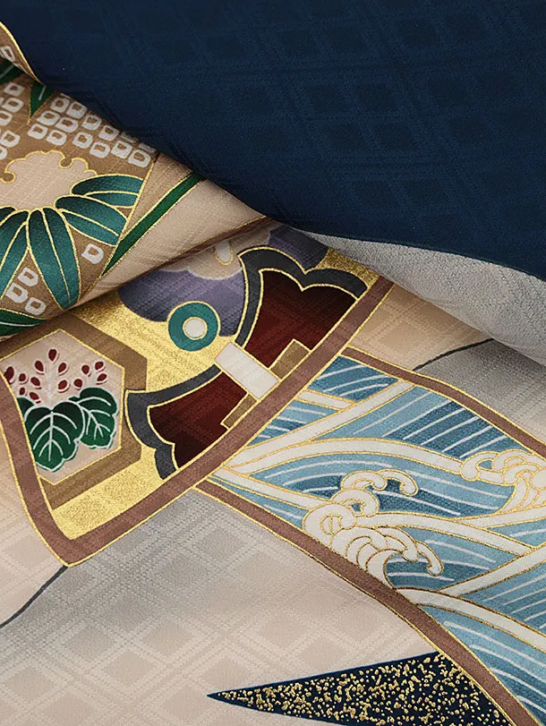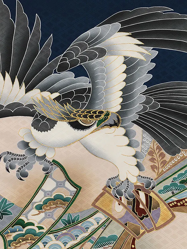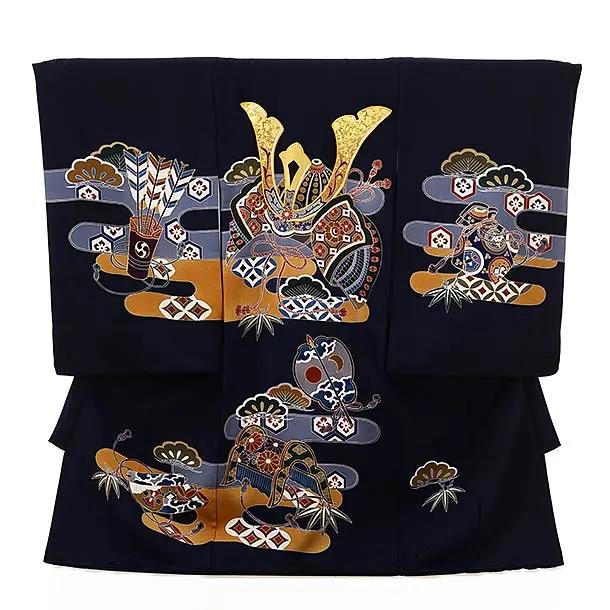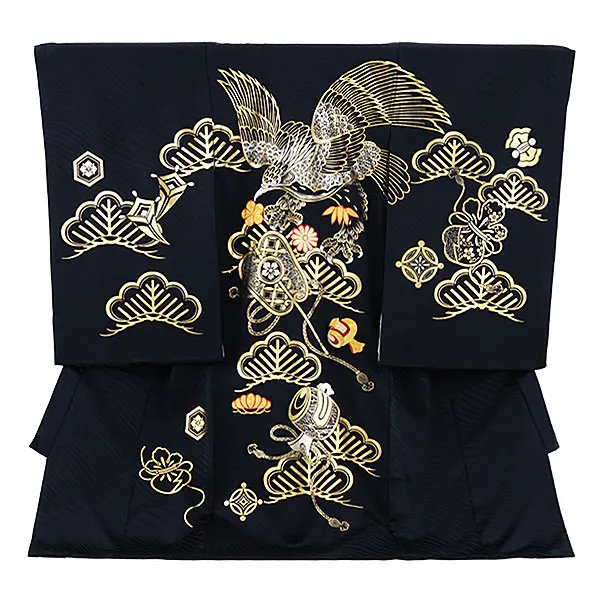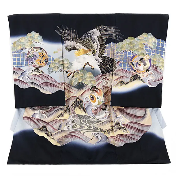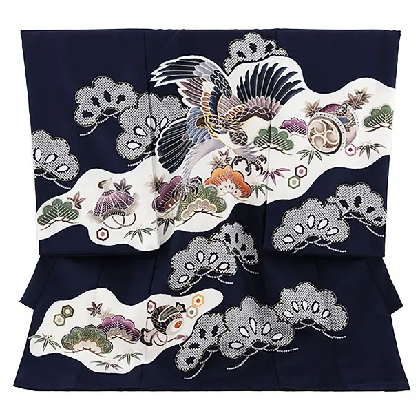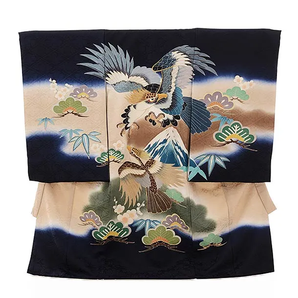 男児産着 お宮参りレンタル2743【正絹】紺地 鷹に束ね熨斗