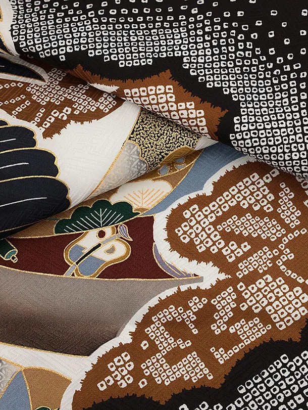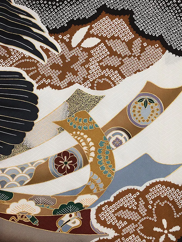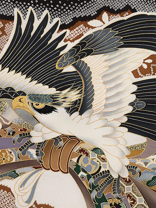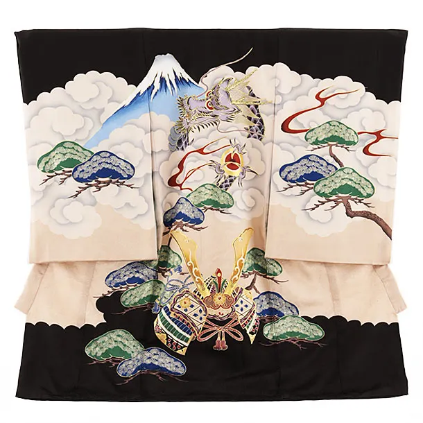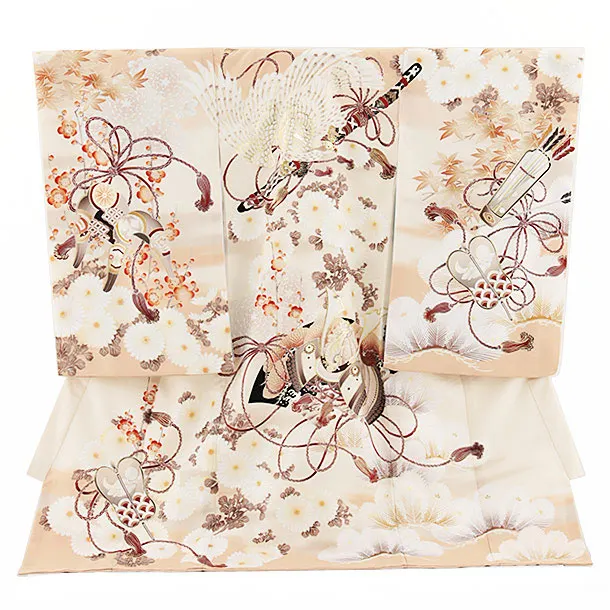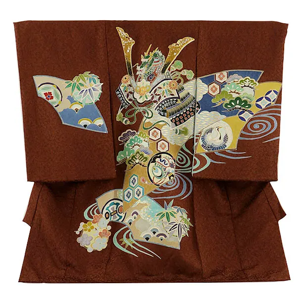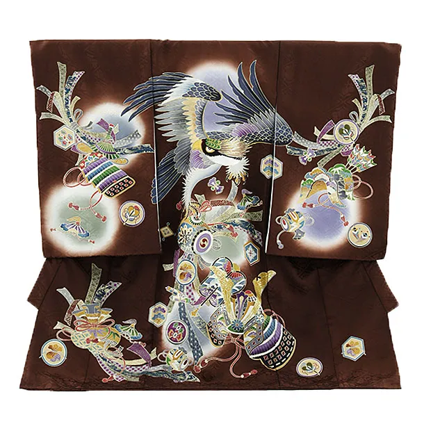 男児産着 お宮参りレンタル2744【正絹】ブラウン地 鷹に束ね熨斗