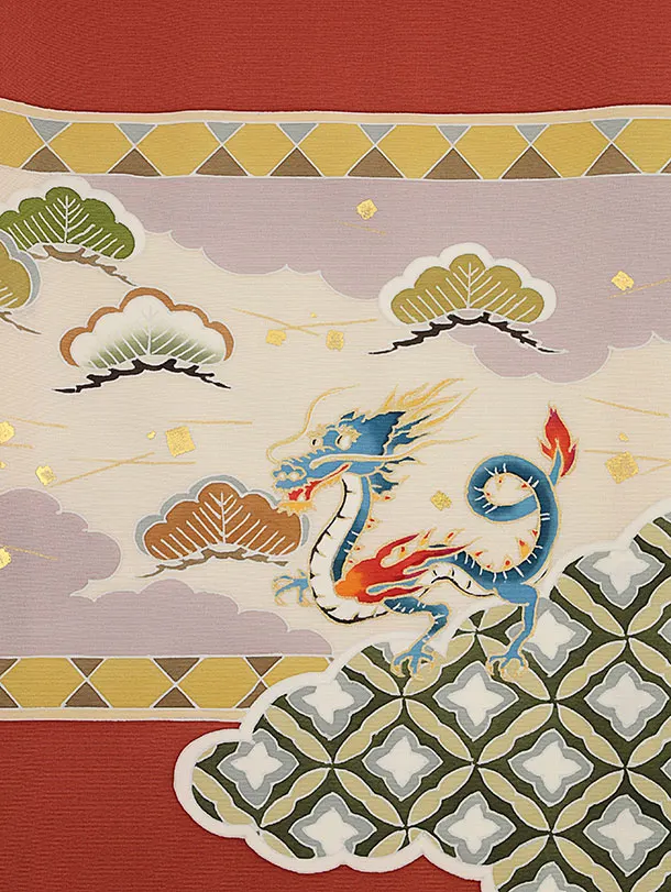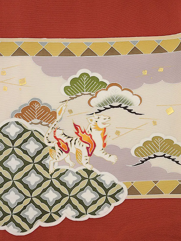 男児産着 お宮参りレンタル2747【正絹】煉瓦色 兜に四神