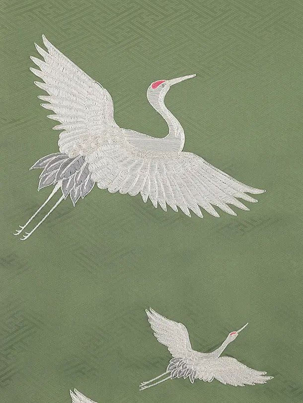 男児産着 お宮参りレンタル2778【正絹】緑色 鶴刺繍