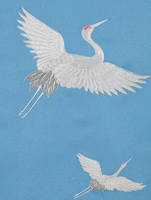 男児産着 お宮参りレンタル2779【正絹】水色 鶴刺繍