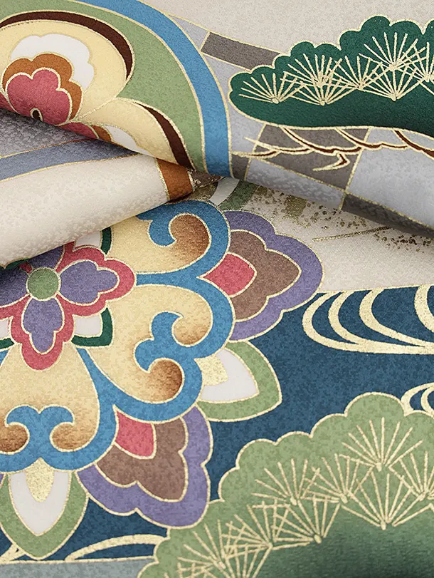 男児産着 お宮参りレンタル2783【正絹】グレー地 宝船と小槌に松