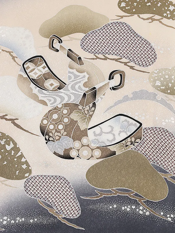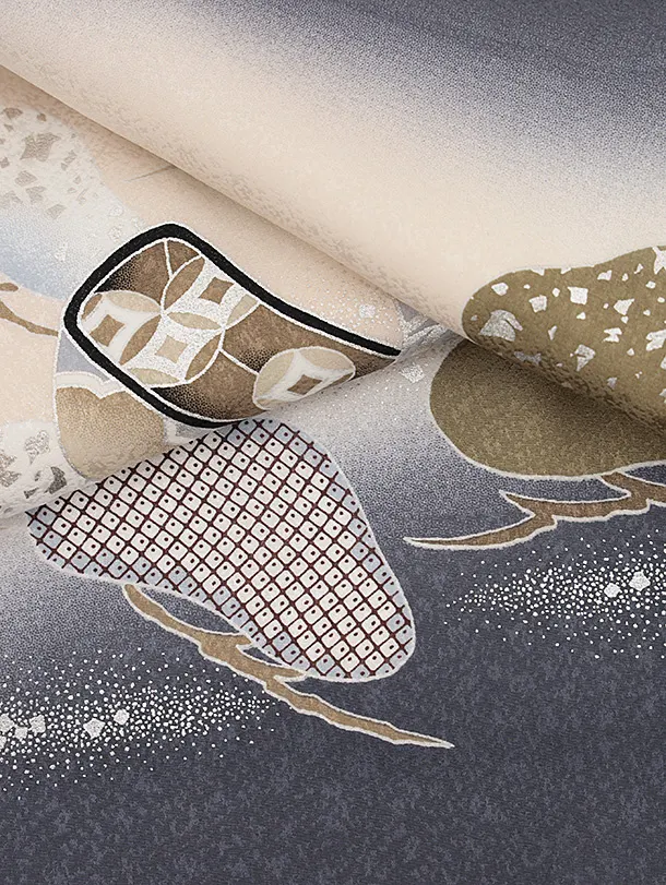 男児産着 お宮参りレンタル2788【正絹】グレー 兜に打ち出の小槌 松