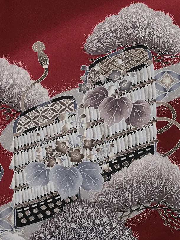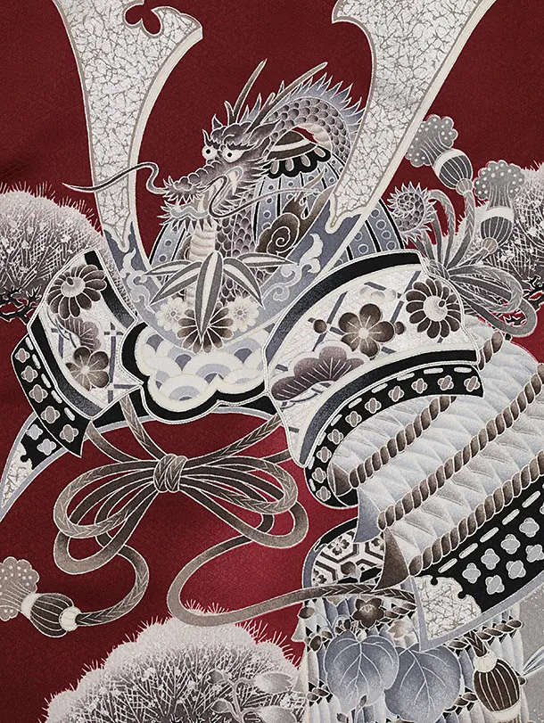 夏用 男児産着 お宮参り 2809 単衣 ワイン色 兜に松