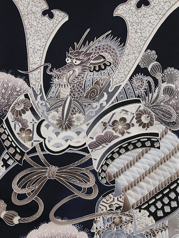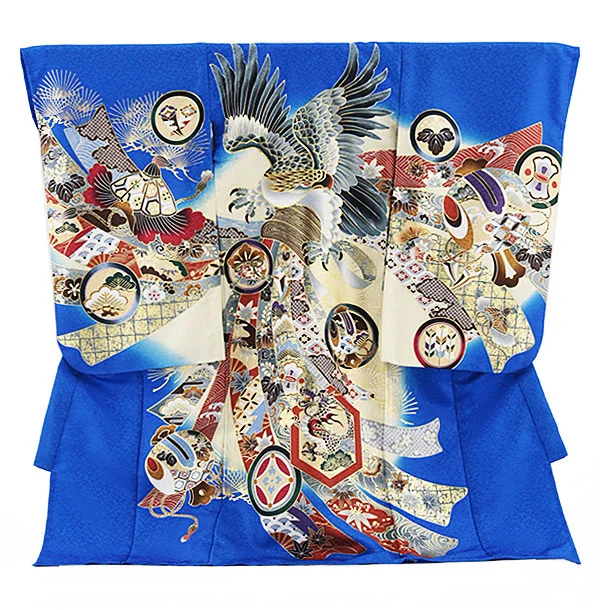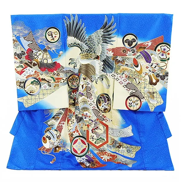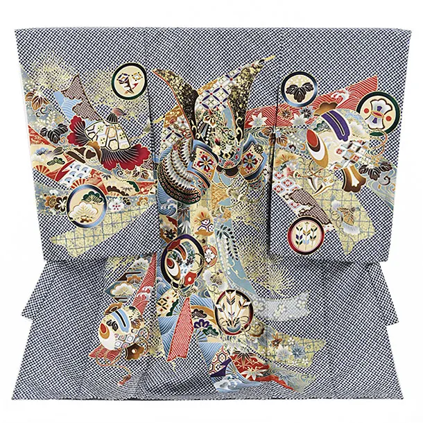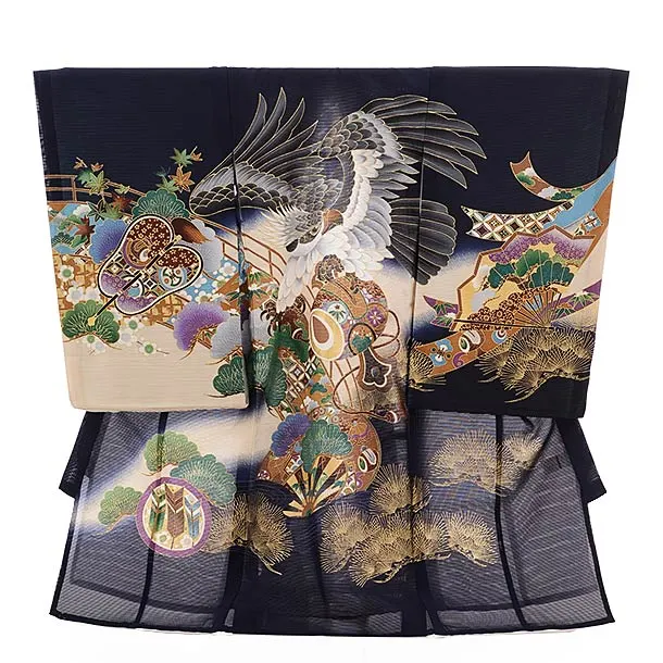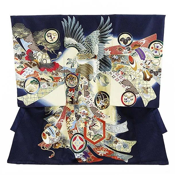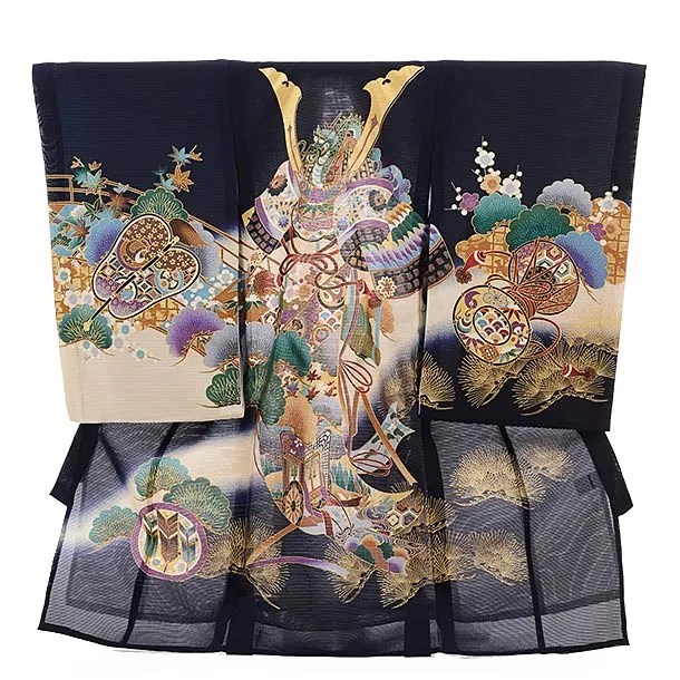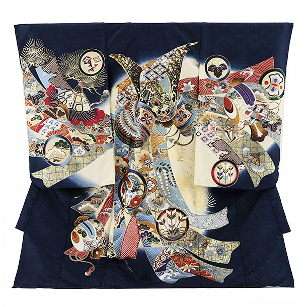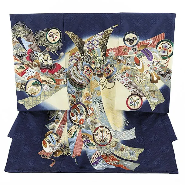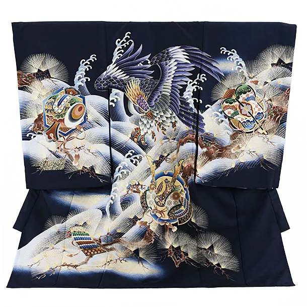 夏用 男児産着 お宮参り 2810 単衣 紺地 兜に松