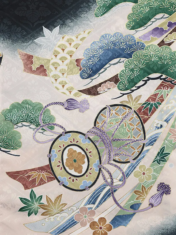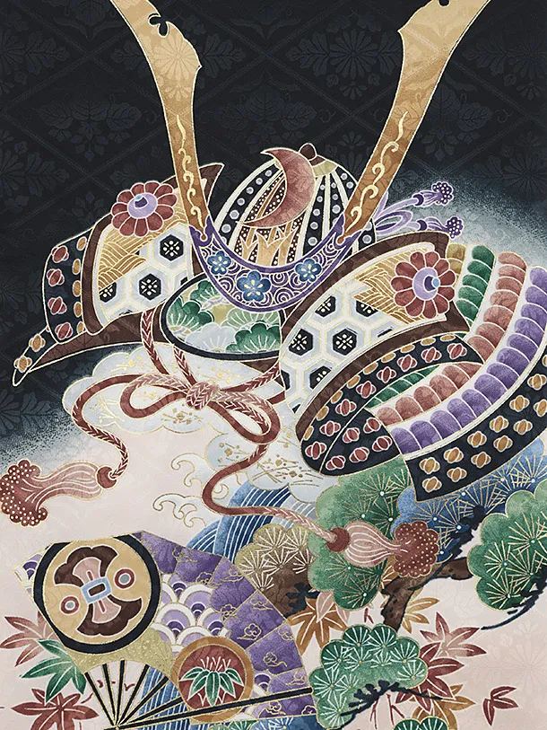 夏用 男児産着 お宮参り 2818 単衣 黒地 兜に松
