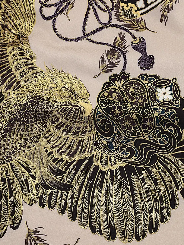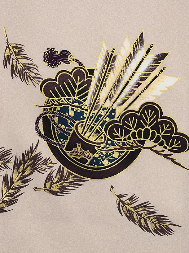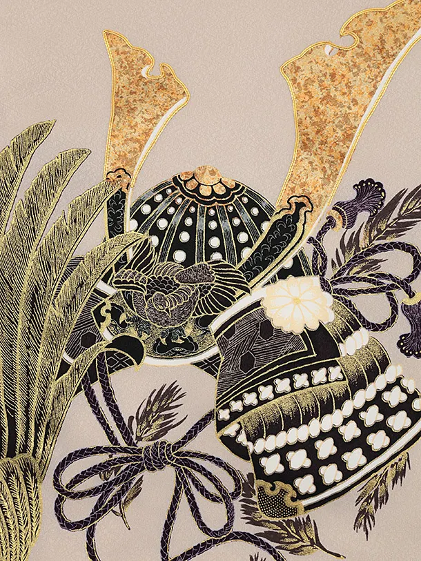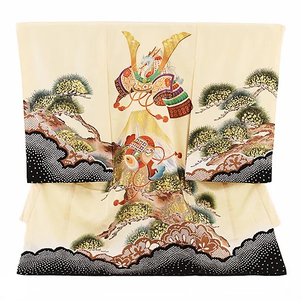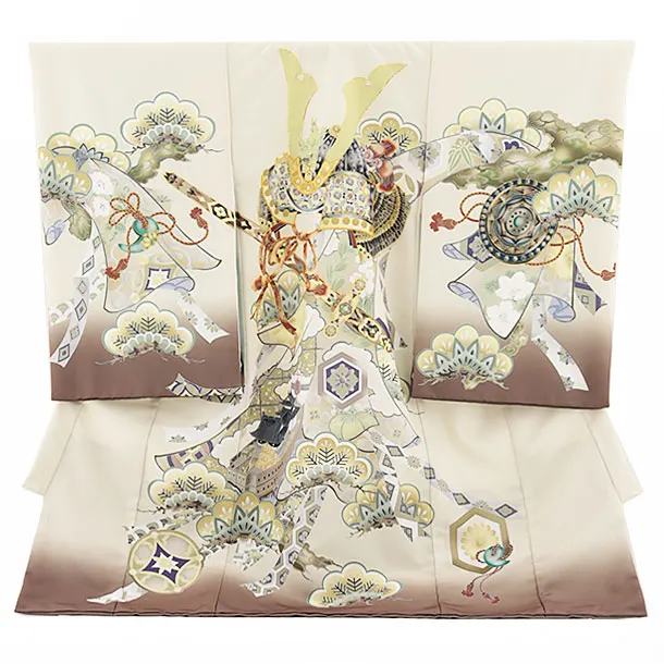 男児産着 お宮参りレンタル2821 ベージュ 兜 鷹