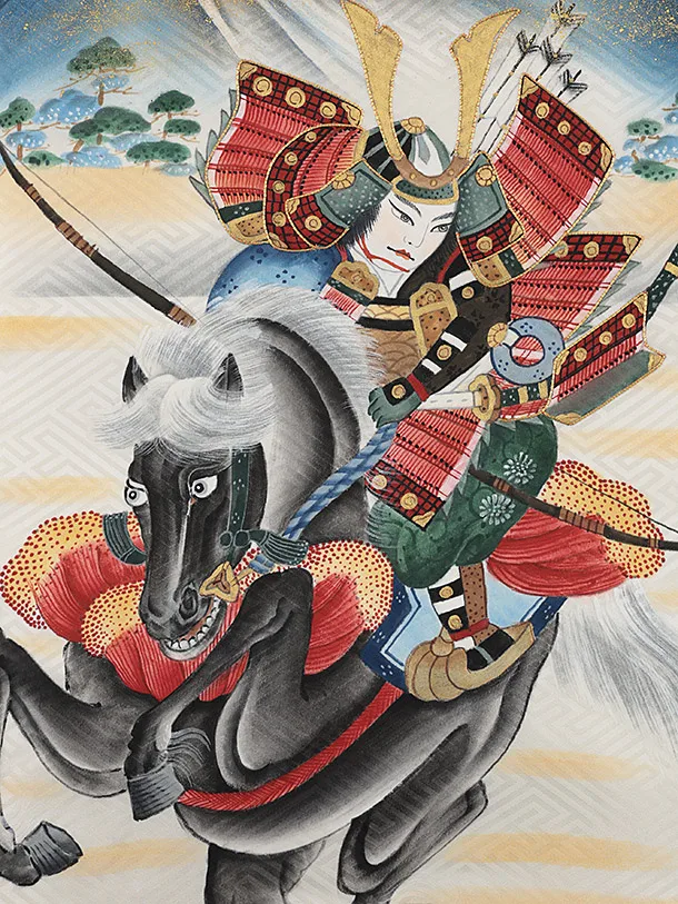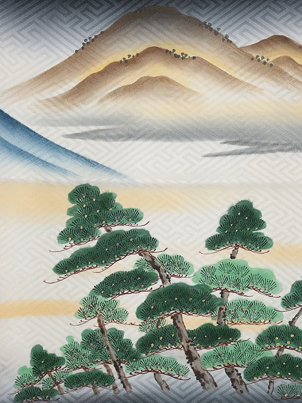 お祝い着をかける時は 絵柄がよく見える様に広げ抱いた子供の体を覆う様に掛け産着の付紐の一方を肩側から他方を脇から通して 抱き手の方の背で蝶結びにします。