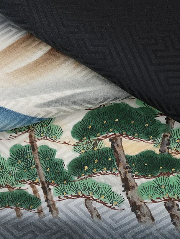 男児産着 お宮参りレンタル2830【正絹】黒地 手描武者に富士