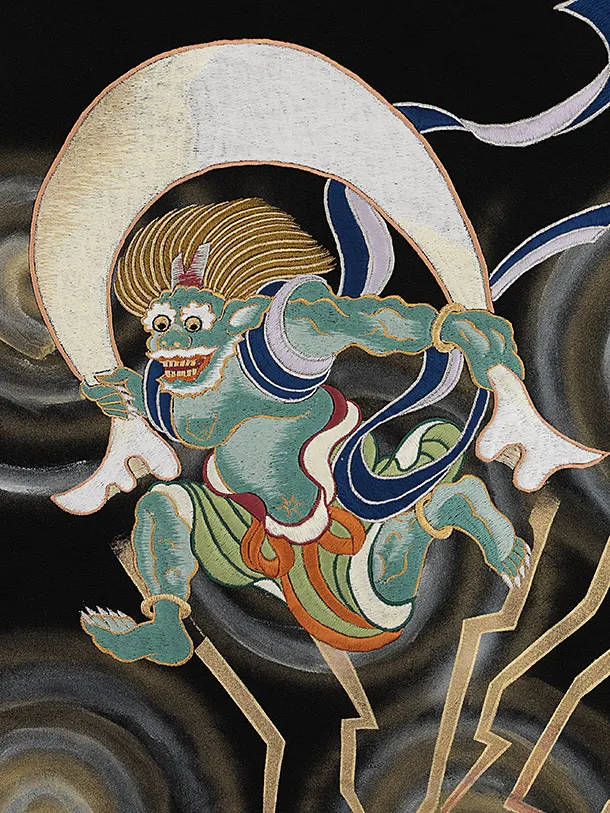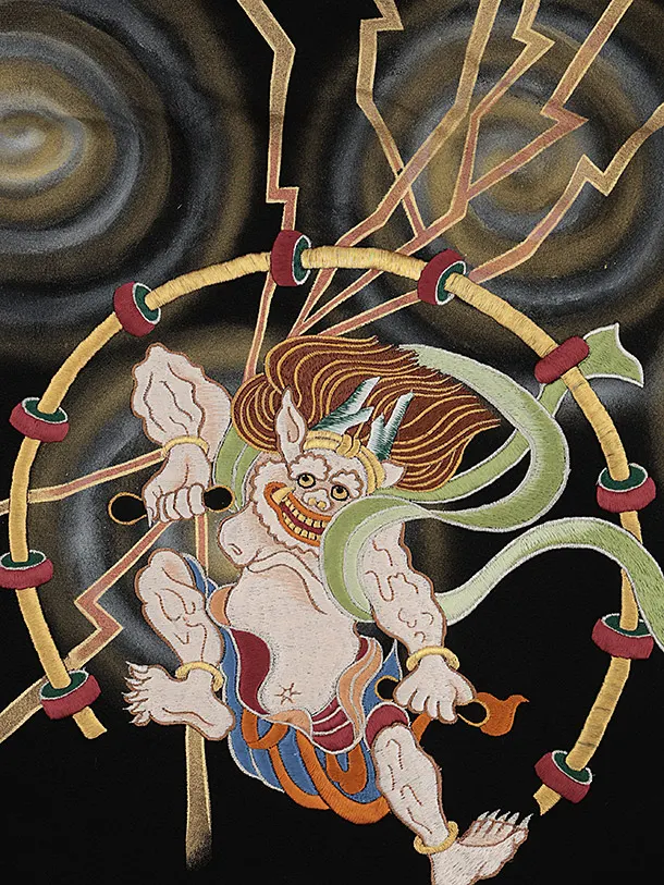 男児産着 お宮参りレンタル2831【高級正絹】黒地 刺繍 風神雷神