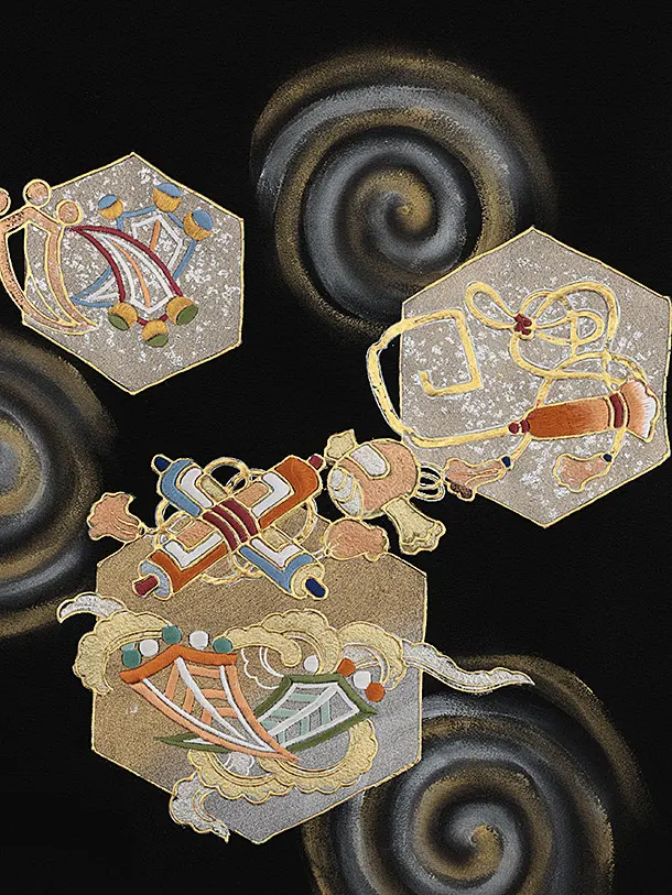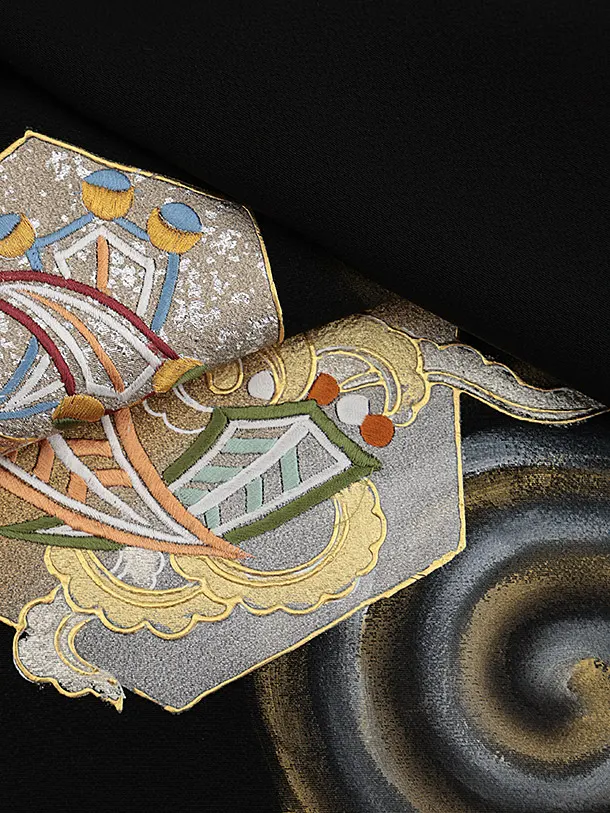男児産着 お宮参りレンタル2832【高級正絹】黒地 刺繍 唐獅子