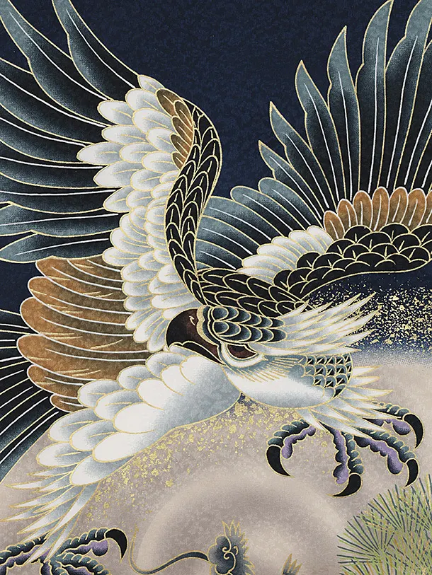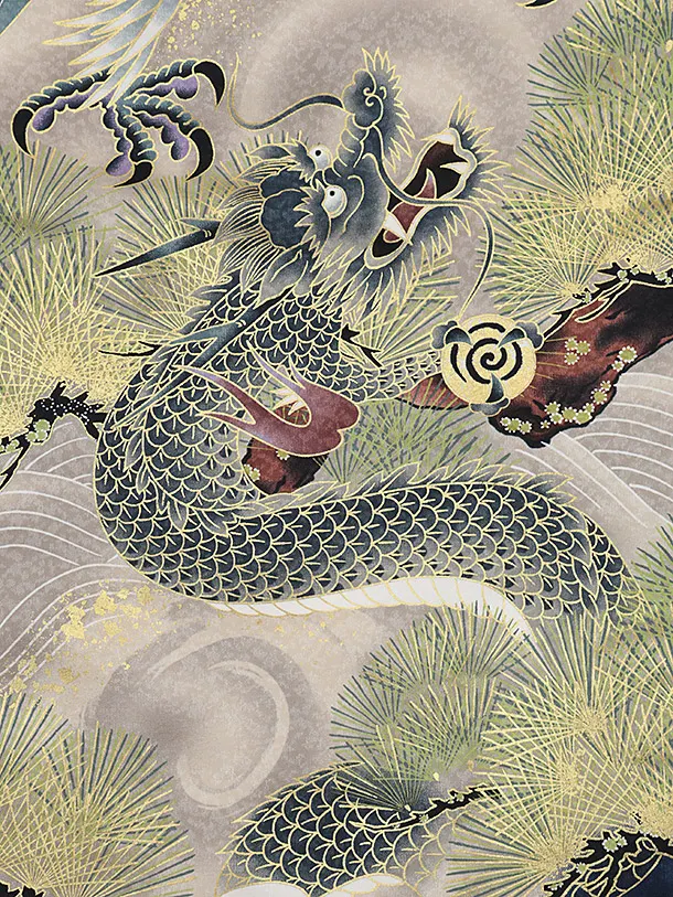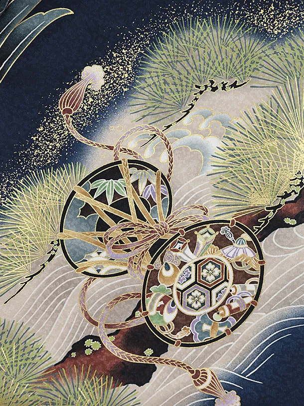男児産着 お宮参りレンタル2862 紺地 鷹と龍 松