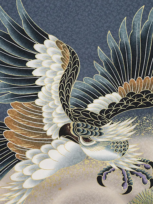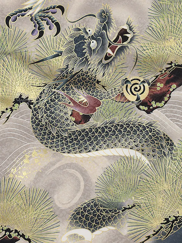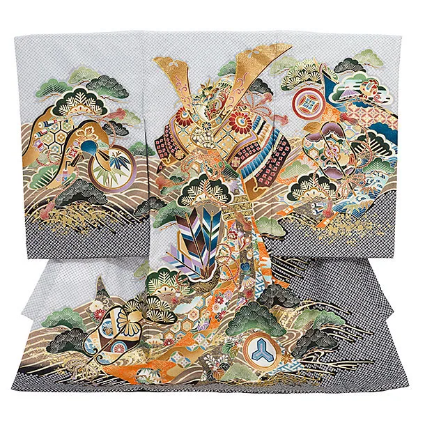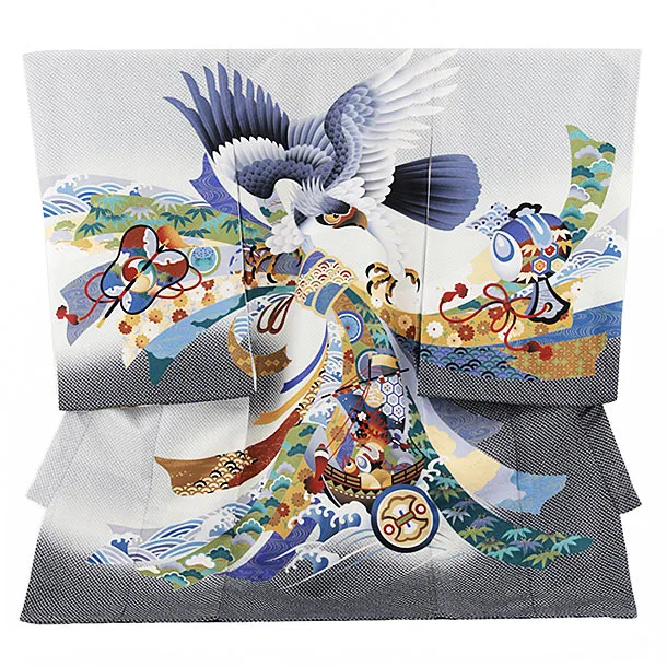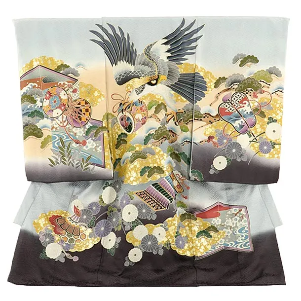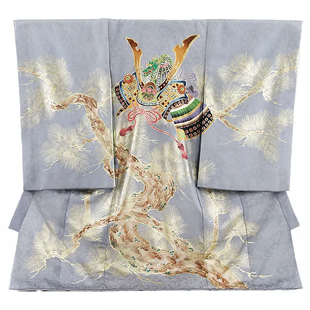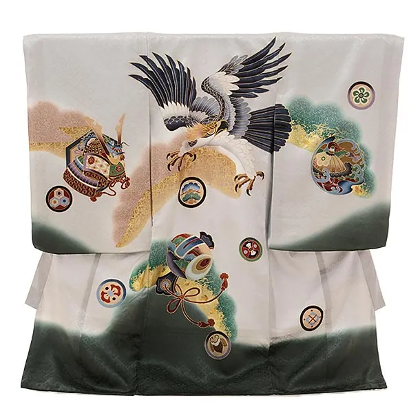 男児産着 お宮参りレンタル2864 グレー 鷹と龍 松
