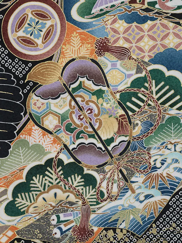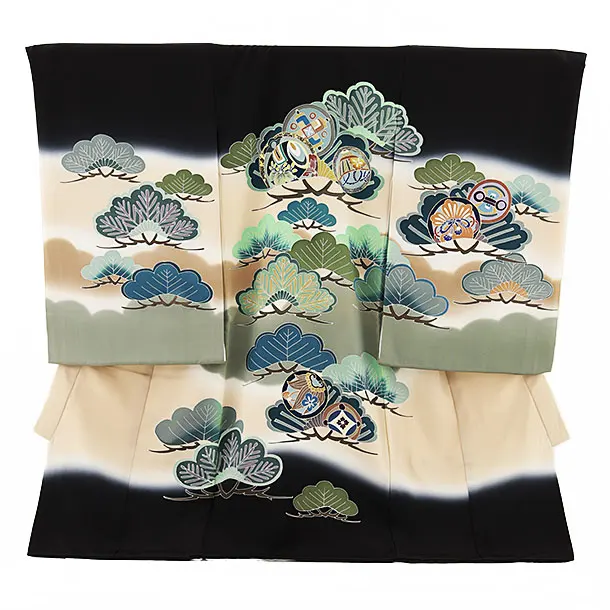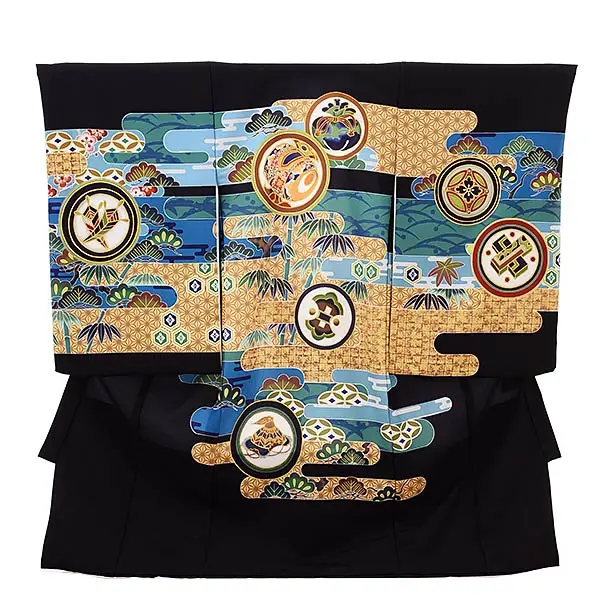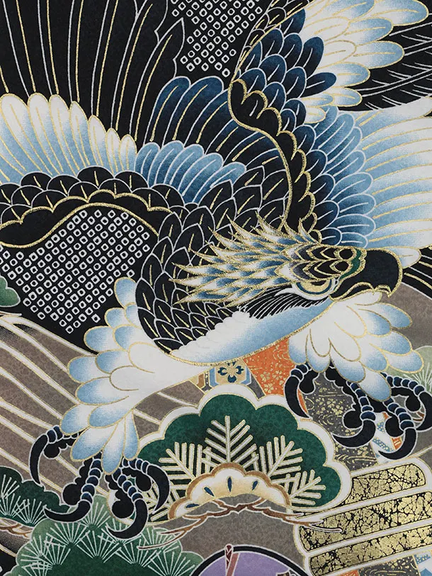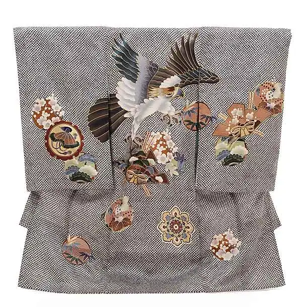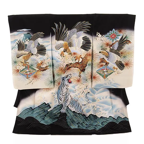 男児産着 お宮参りレンタル2914 黒地 鷹に吉祥文様