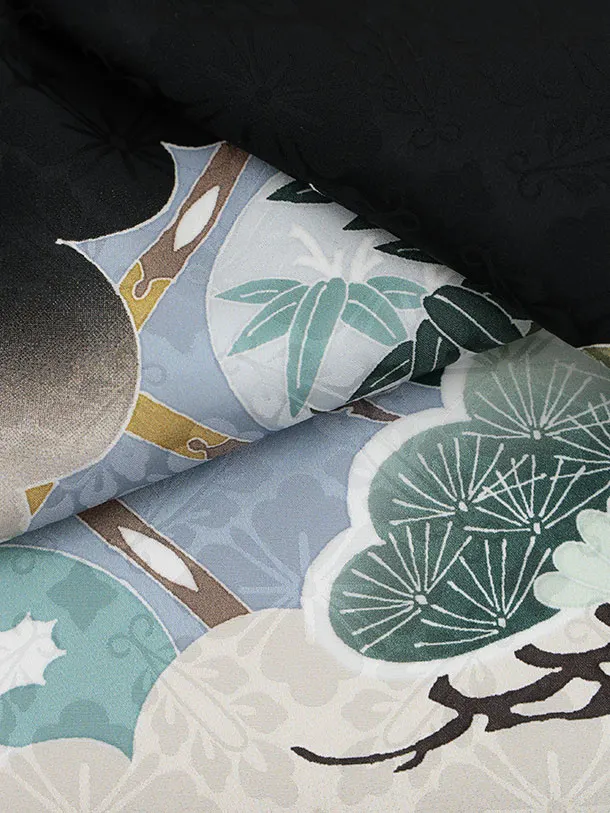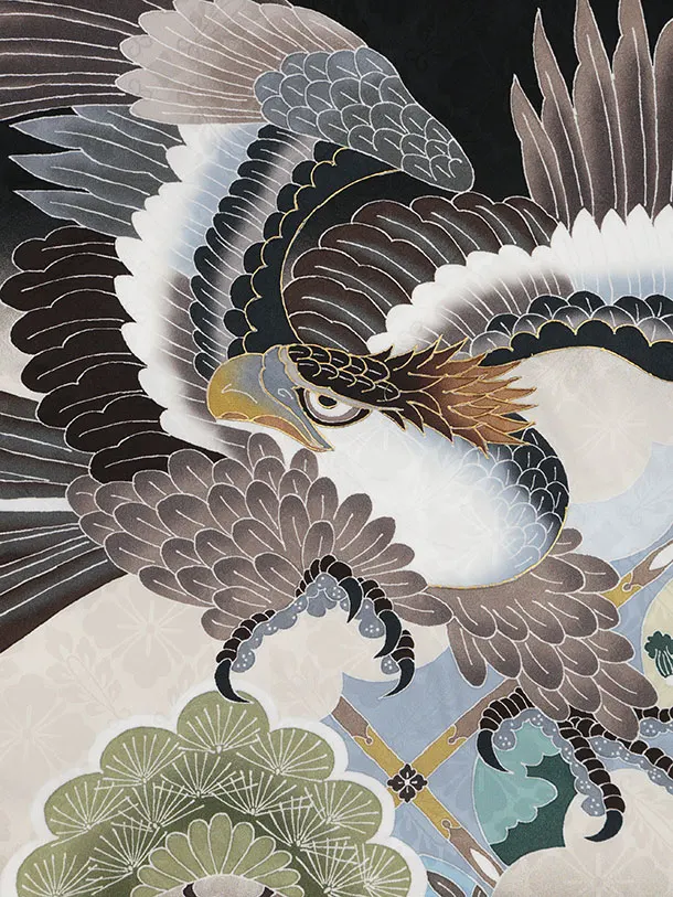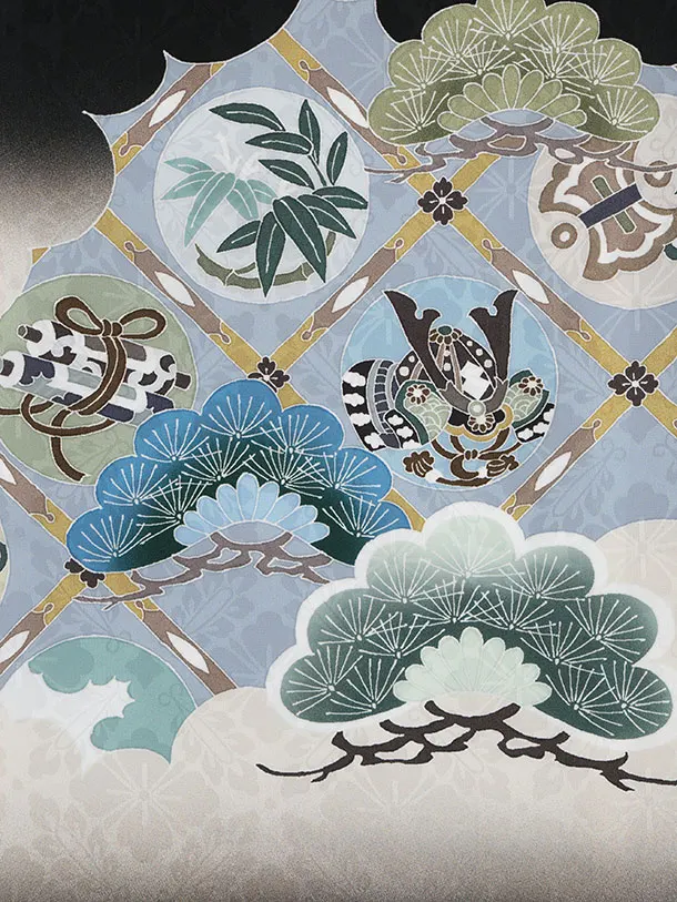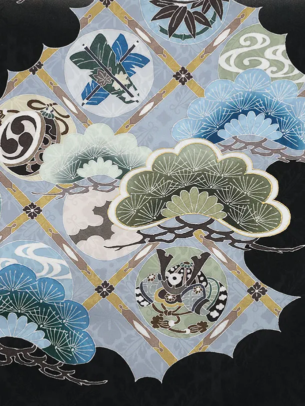男児産着 お宮参りレンタル2929【正絹】黒地 鷹 格子に丸紋