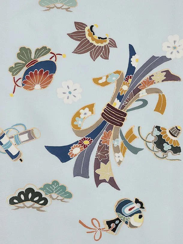 男児産着 お宮参りレンタル2933【正絹】水色 熨斗に宝尽くし