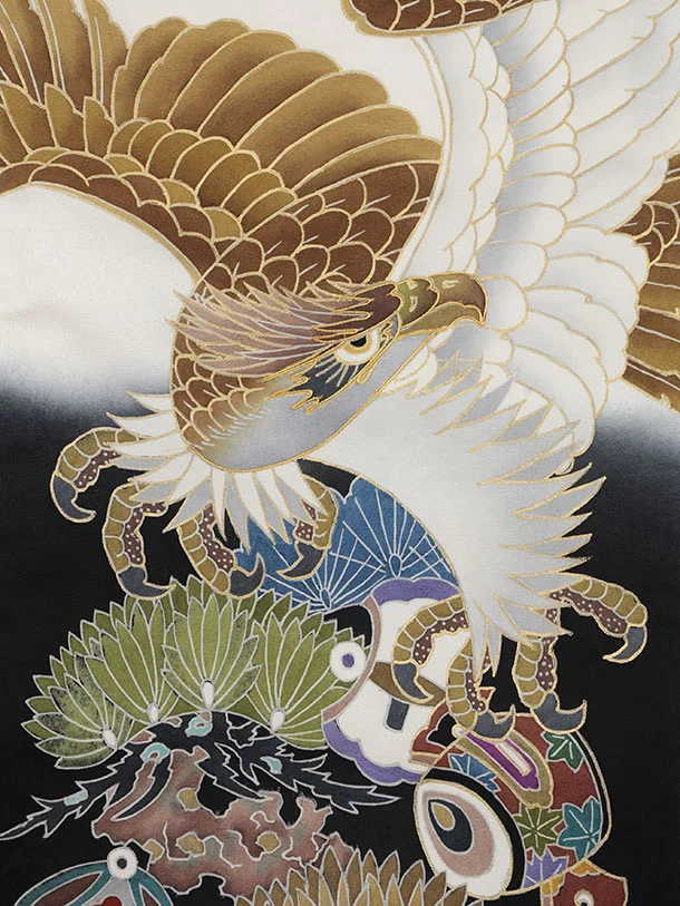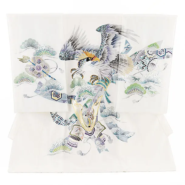 男児産着 お宮参りレンタル2945【高級正絹】白地 鷹に松