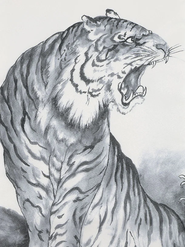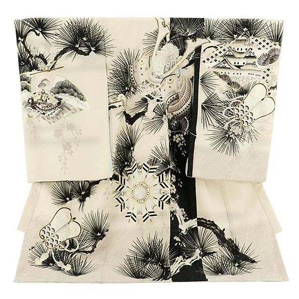 男児産着 お宮参りレンタル2952 白地 虎 水墨画調