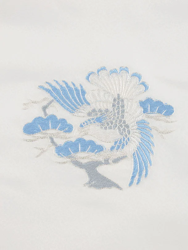 男児産着 お宮参りレンタル2954 白地 刺繍 兜 鶴