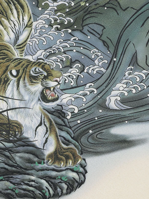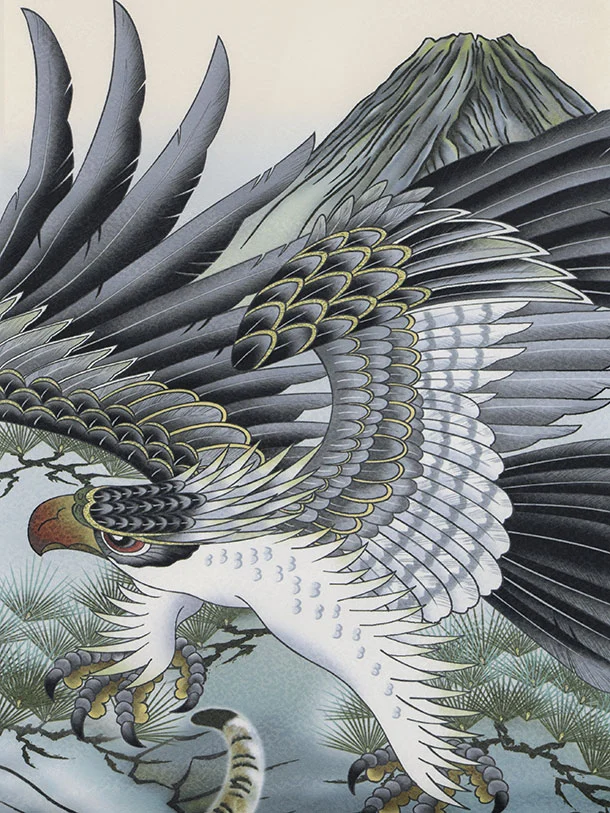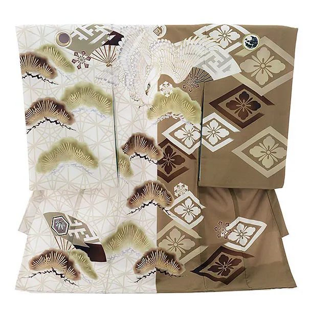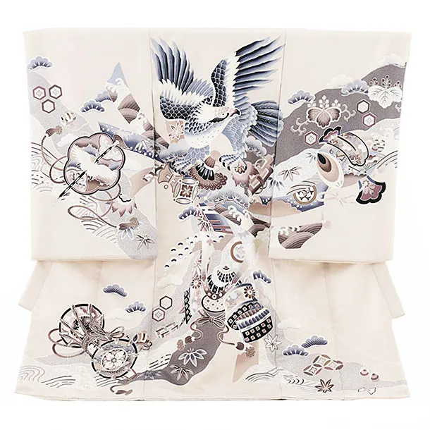 男児産着 お宮参りレンタル2957 ベージュ 鷹 虎 松