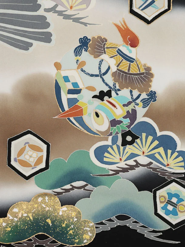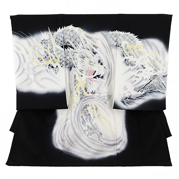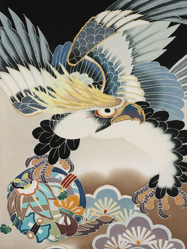 男児産着 お宮参りレンタル2991【正絹】 黒地 鷹に吉祥文様