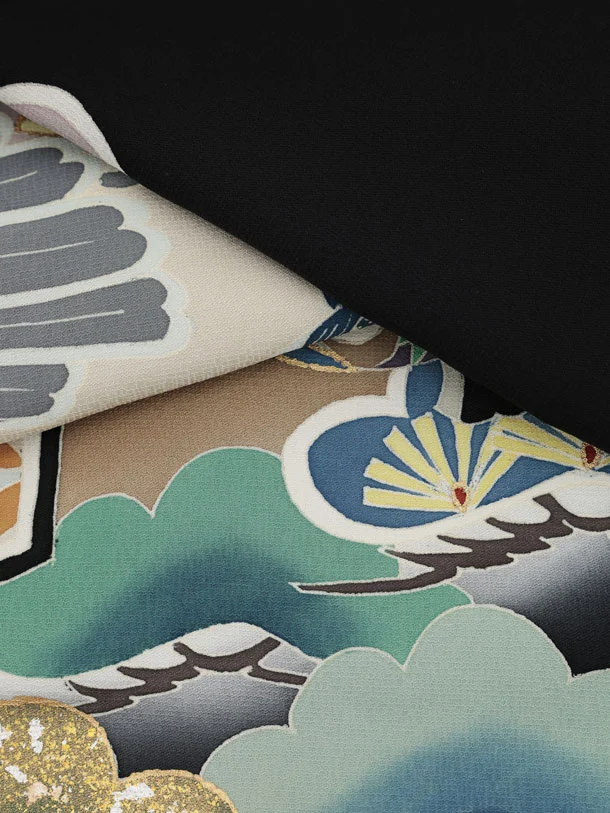 お祝い着をかける時は 絵柄がよく見える様に広げ抱いた子供の体を覆う様に掛け産着の付紐の一方を肩側から他方を脇から通して 抱き手の方の背で蝶結びにします。