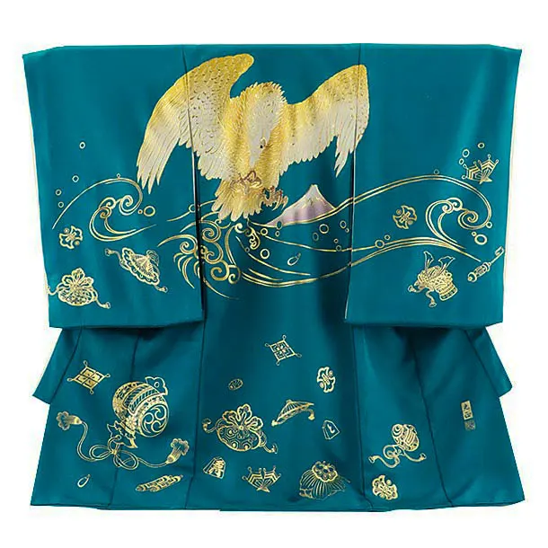 男児産着 お宮参りレンタル2993【正絹】 青地 兜に宝づくし
