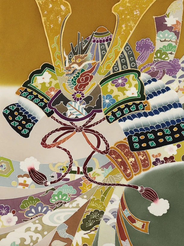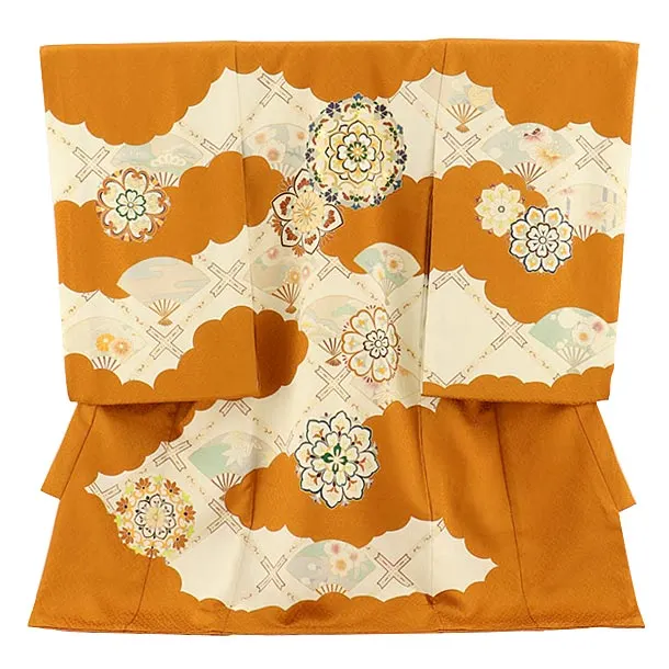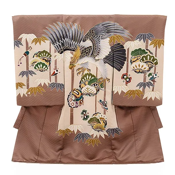 男児産着 お宮参りレンタル2994【正絹】 金茶 兜に束ね熨斗