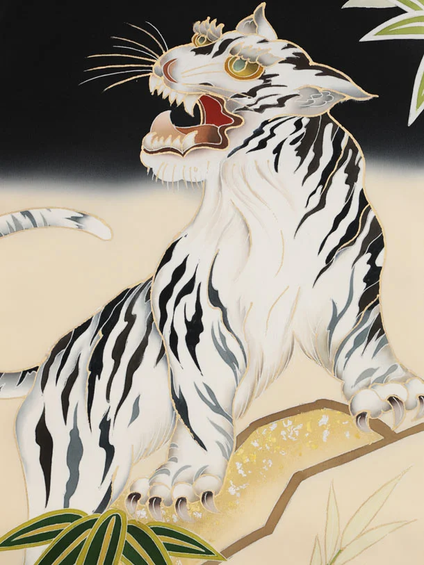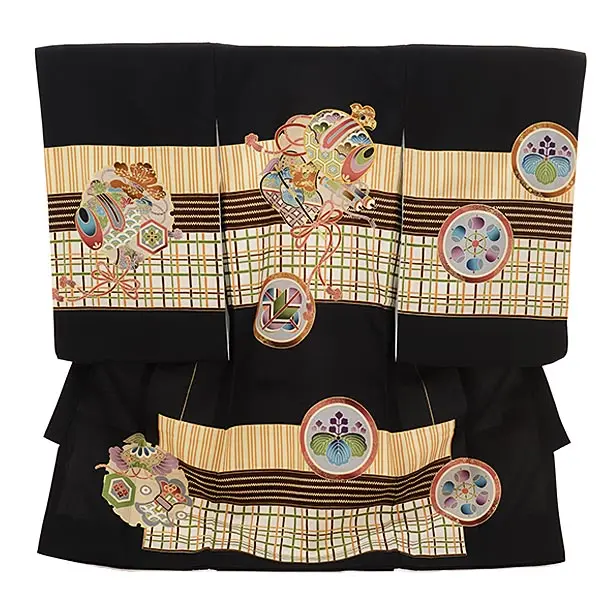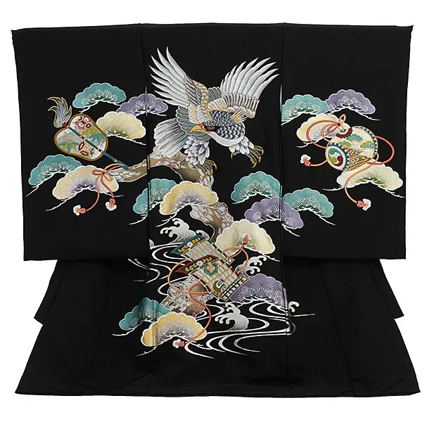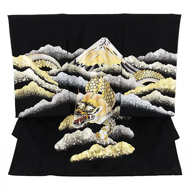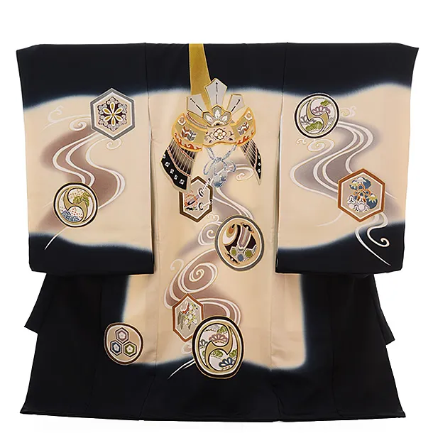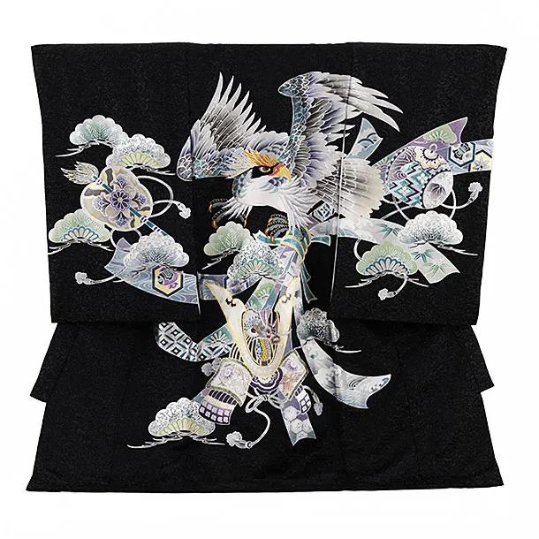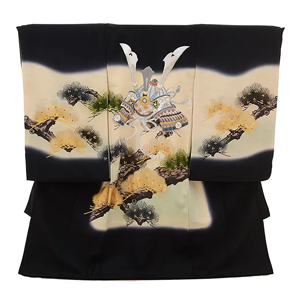 男児産着 お宮参りレンタル2995【正絹】 黒ぼかし 虎に竹