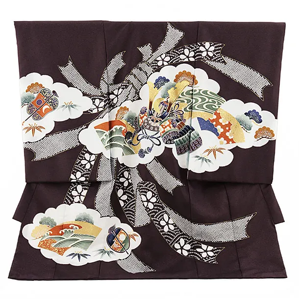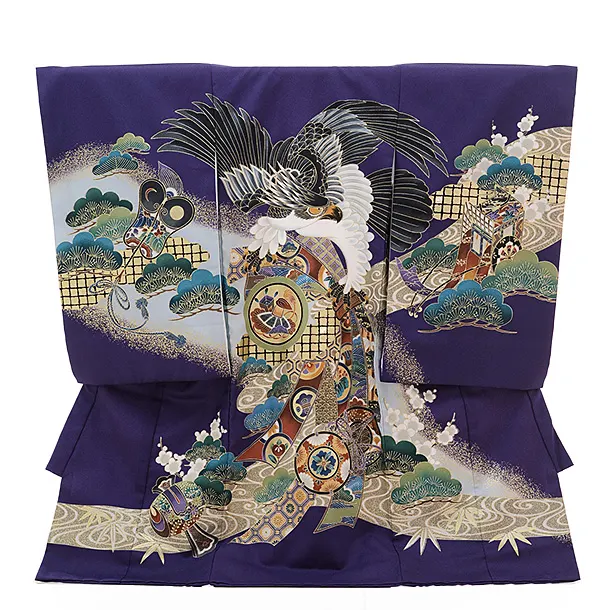 産着レンタル 男の子(お宮参り)D004 紫地 ラメ鷹