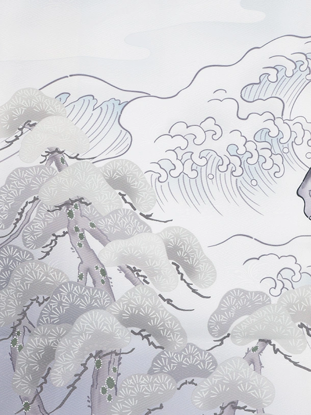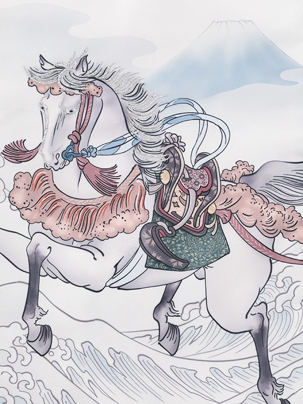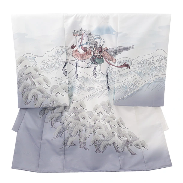 男児産着 お宮参りレンタルR028 白地 波に馬 松