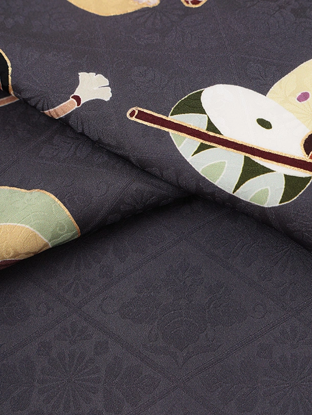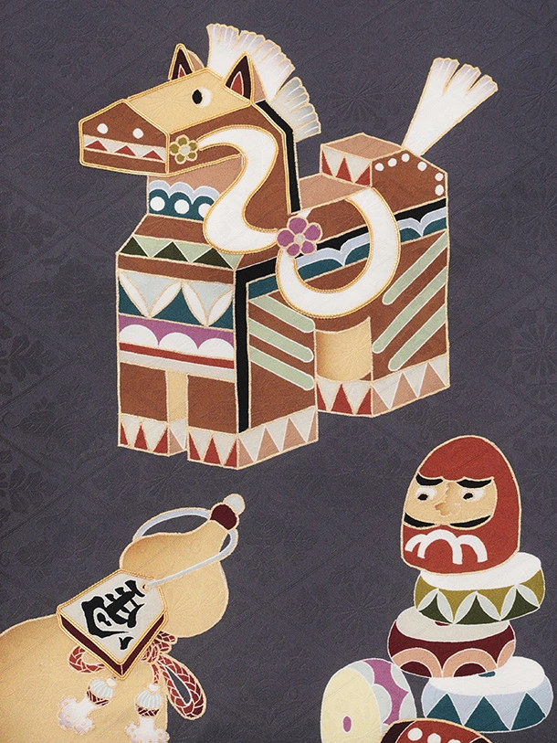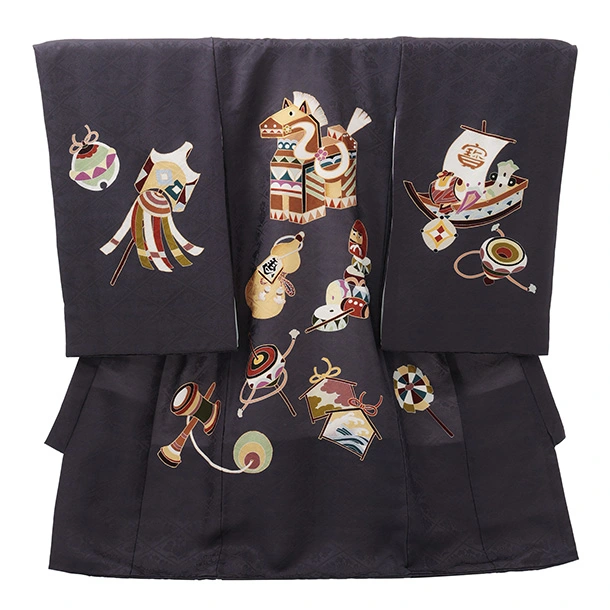 男児産着 お宮参りレンタルR036 【正絹】グレー地 午 縁起尽くし