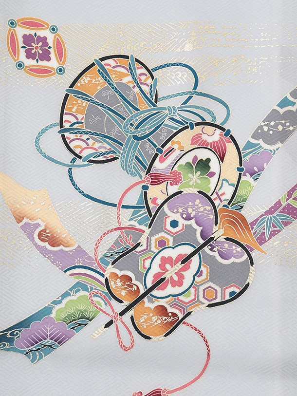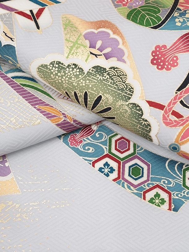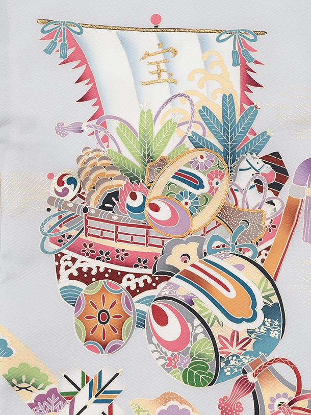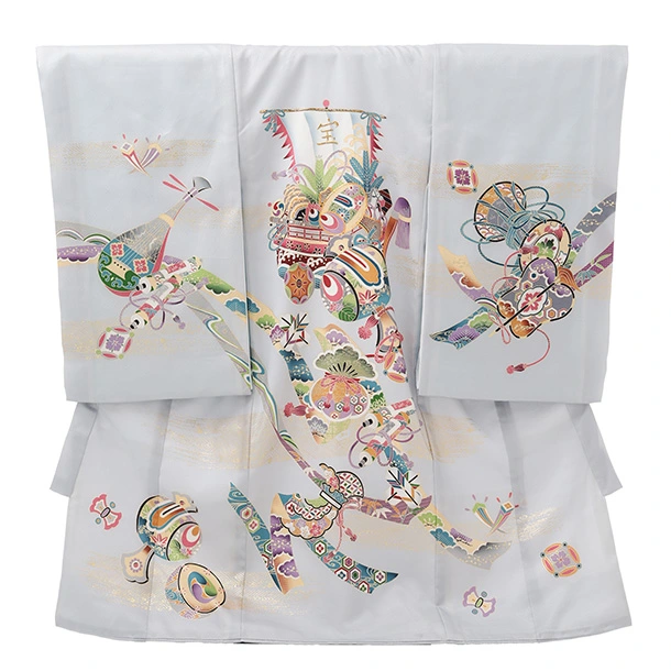 男児産着 お宮参りレンタルR040 【正絹】薄グレー地 宝船と小槌