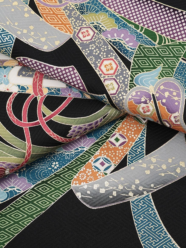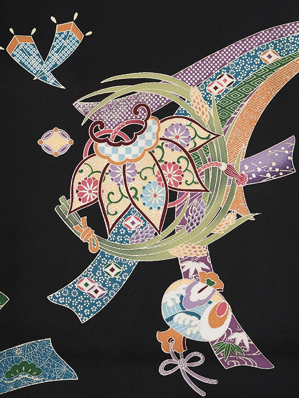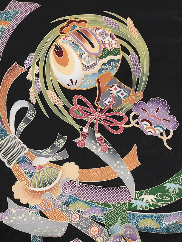 男児産着 お宮参りレンタルR042 【正絹】黒地 束ねのし小槌