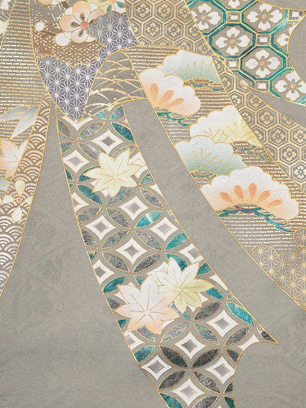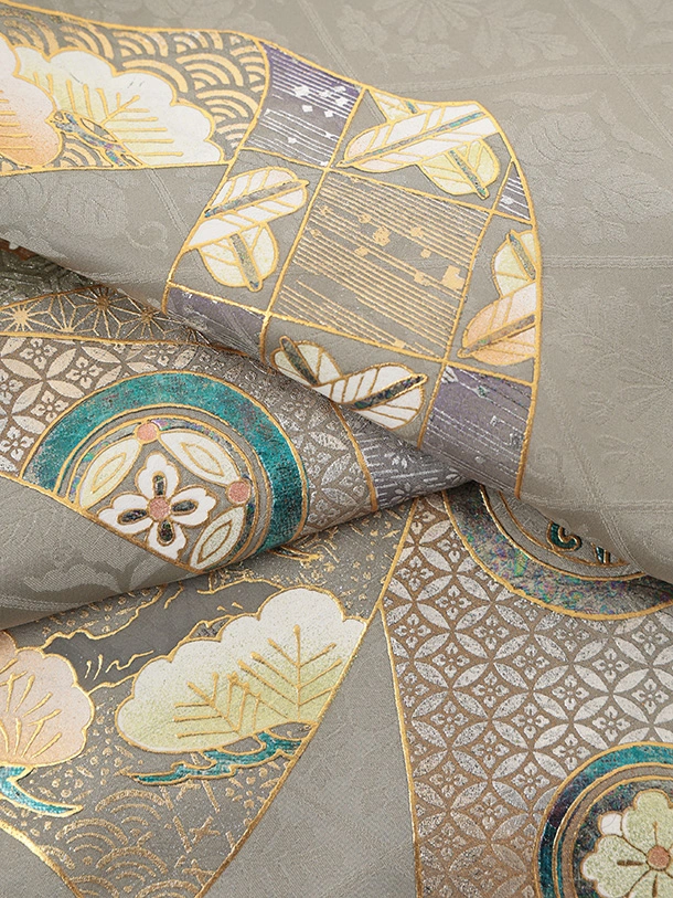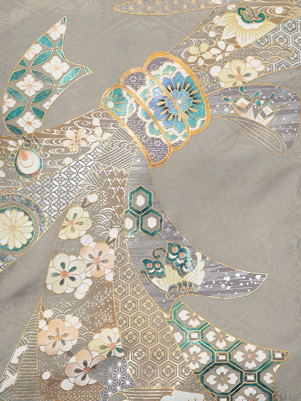 男児産着 お宮参りレンタルR067 【正絹】グレージュ地 束ね熨斗