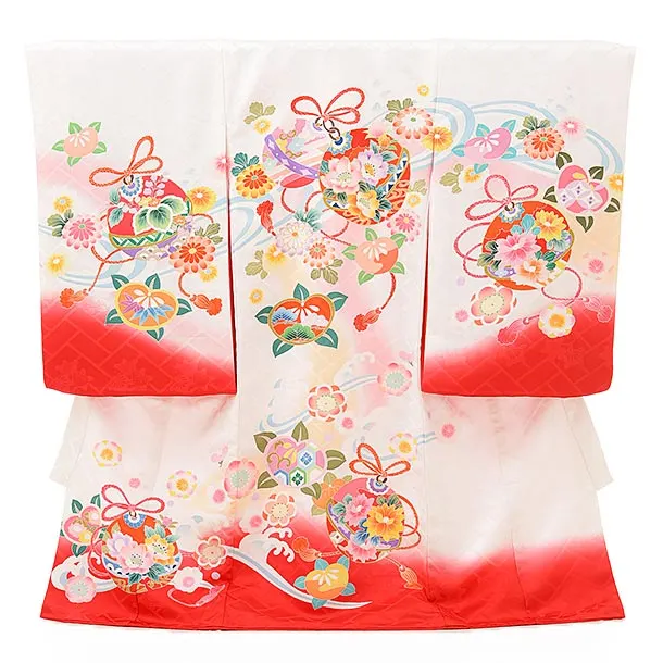 女児産着 お宮参り レンタル 1281 白地 オレンジ 花